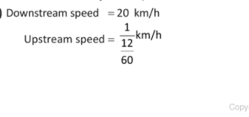 - Time taken to move 1 km against the stream: 12 minutes