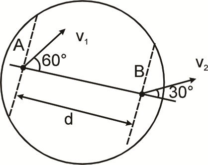 Two points A & B on a disc have velocities v1 & v2 at some moment. Their directions make angles 60° and 30° respectively with the line of separation as shown in figure. The angular velocity of disc is :