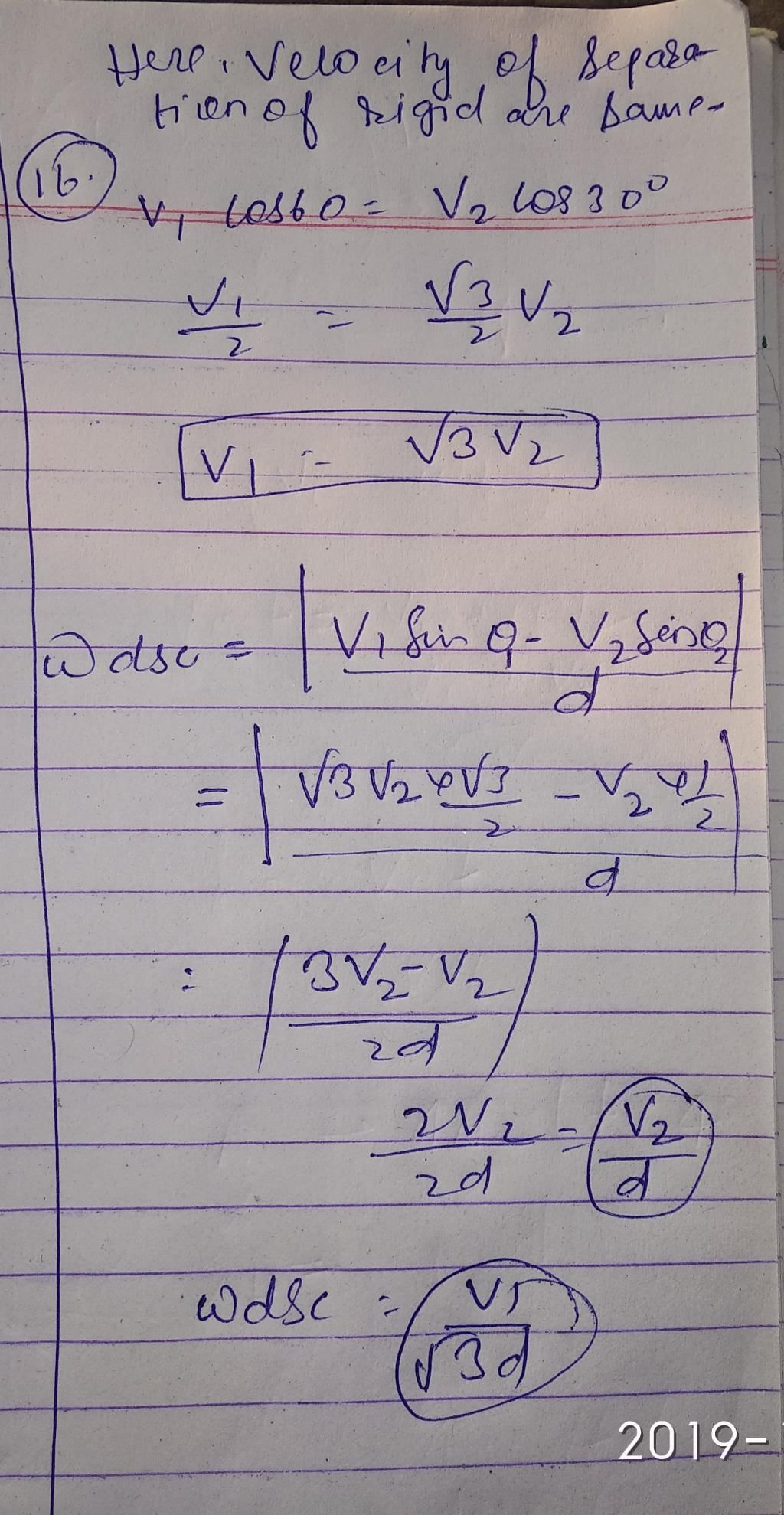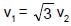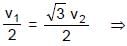 v1 cos60° = v2 cos30°