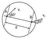 Two points A & B on a disc have velocities v1 & v2 at some moment. Their directions make angles 60° and 30° respectively with the line of separationas shown in figure. The angular velocity of disc is :a)b)c)d)Correct answer is option 'D'. Can you explain this answer? for NEET 2025 is part of NEET preparation. The Question and answers have been prepared according to the NEET exam syllabus. Information about Two points A & B on a disc have velocities v1 & v2 at some moment. Their directions make angles 60° and 30° respectively with the line of separationas shown in figure. The angular velocity of disc is :a)b)c)d)Correct answer is option 'D'. Can you explain this answer? covers all topics & solutions for NEET 2025 Exam. Find important definitions, questions, meanings, examples, exercises and tests below for Two points A & B on a disc have velocities v1 & v2 at some moment. Their directions make angles 60° and 30° respectively with the line of separationas shown in figure. The angular velocity of disc is :a)b)c)d)Correct answer is option 'D'. Can you explain this answer?.