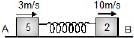 Two blocks of the masses 10 kg and 4 kg are connected by a spring of negligible mass and placed on a frictionless horizontal surface. An impulse gives a velocity of 14 m/s to the heavier block. The velocity of centre of mass is