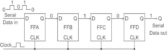 If each flip flop is having 'tp' as propagation delay, then to get output, the overall propagation Delay will be sum of the propagation Delay of each flip flop.