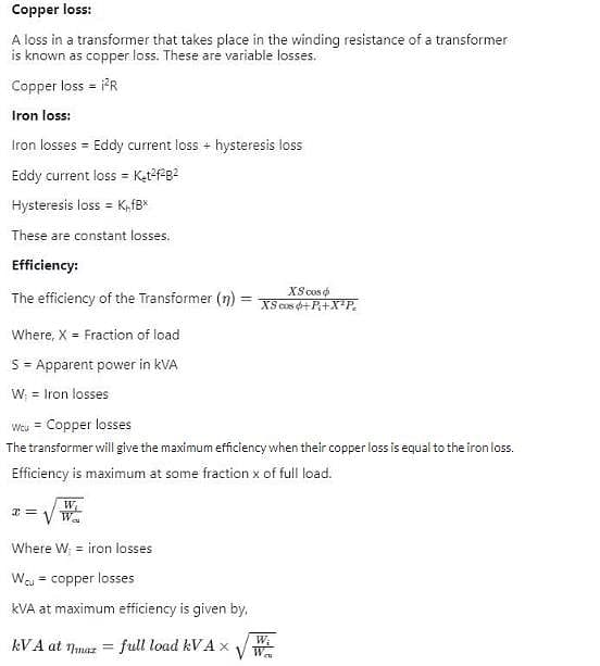 Transformation ratio: It is defined as the ratio of the secondary voltage to the primary voltage. It is denoted by K.