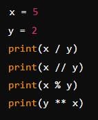 The third `print(x % y)` outputs `1` (remainder).