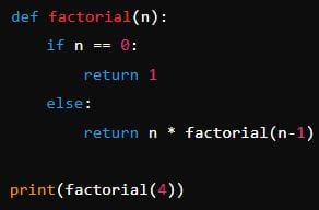 'factorial(4)' computes '4 * 3 * 2 * 1' which equals '24'.
