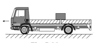 The rear side of a truck is open and a box of 40 kg mass is placed 5m away from the open end as shown in fig. The coefficient of friction between the box and the surface below it is 0.15. On a straight road, the truck starts from rest and accelerates with 2ms-2 . At what distance from the starting point does the box fall off the truck.