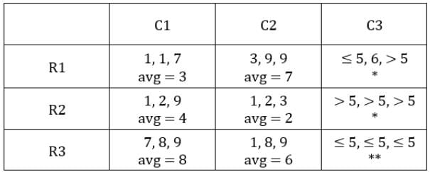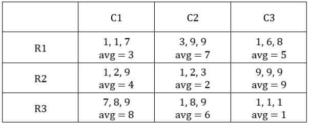 ∴ Average for C3R2 is 9 and that for C3R1 is 5.