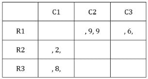 C1R2, C1R3, C2R1, C2R3 and C3R2 i.e., 5 blocks have at least one sack containing 9 coins.