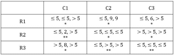 C2R3: Median has to be greater than 5, hence condition 2 cannot be satisfied, hence conditions 1 and 3 have to be satisfied.