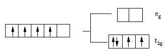 In the complex ion M has four d-electrons and L is a strong field ligand. According to crystal field theory, the magnetic properties of the complex ion correspond to how many unpaired electrons?