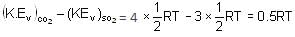 The difference in vibrational kinetic energies per mole of CO2 and SO2 at temperature T, according to law of equipartition of energy, is equal to