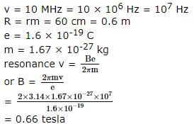 A cyclotron oscillator frequency is 10 MHz. If radius of its dees 60 cm, then magnetic field for accelerating the protons is (Given e = 1.6 x 10-19C, mp = 1.67 x 10-27 kg)
