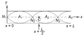 At a certain instant a stationary transverse wave is found to have maximum kinetic energy. The appearance of string at that instant is