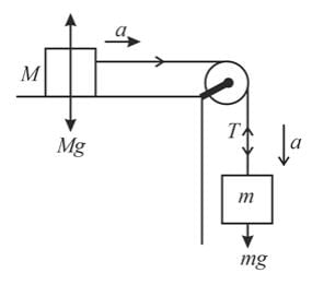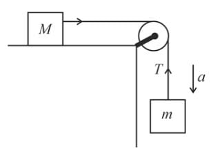 Two blocks of masses M and m are connected by a string passing over a pulley as shown in the figure.
