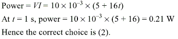 In an inductor, the current I (in amperes) varies with time t (in seconds) as I = 5 + 16t. If the emf induced in the inductor is 10 mV, then the power supplied to the inductor at t = 1s is