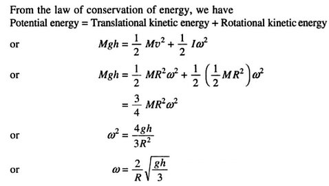 A solid cylinder of mass M and radius R rolls down an inclined plane of height 'h'. The angular velocity of the cylinder when it reaches the bottom of the plane will be