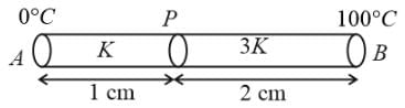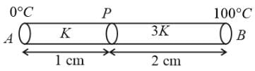 Two bars of thermal conductivities K and 3K and lengths 1 cm and 2 cm, respectively, have equal cross-sectional area, they are joined lengthwise as shown in the figure. If the temperature at the ends of this composite bar is 0°C and 100°C respectively (see figure), then the temperature (T) of the interface is: