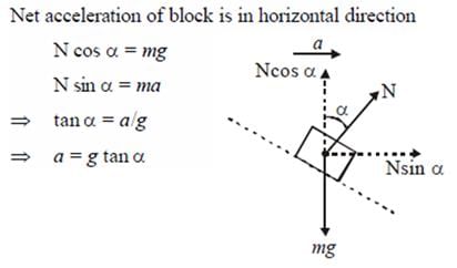 A block is kept on a frictionless inclined surface with angle of inclination α. The incline is given an acceleration 'a' to keep the block stationary. Then 'a' is equal to