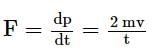 A particle of mass m moving with a velocity v strikes a wall and rebounds back. If the magnitude of the velocity is unchanged, the magnitude of force exerted on the wall by the particle during the time of contact, t will be -
