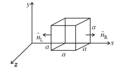 The electric field components in the given figure are Ex = αx1/2 and Ey = Ez = 0 in which α = 800 N C−1 m−1/2. The charge within the cube is, if net flux through the cube is 1.05 m2 C−1 (assume a = 0.1 ma = 0.1 m)