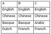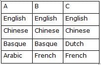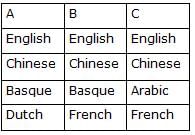 (2) English and Chinese are spoken by all three teams, Basque and French by exactly two teams and the other languages by exactly one team.