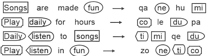 ‘Songs are made fun’ is written as ‘qa ne hu mi’.