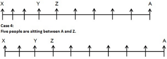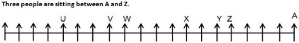 A certain number of students are sitting in a line and all of them are facing north. A is at the extreme right end of the row. There are only two people between U and V. Y is sitting between X and Z. There are at least two people and at most five people sitting between A and Z. X is on the even-numbered seat when counted from the right end. There are three people between X and W. The number of people sitting on the left of W is three less than that of his right. Y is to the immediate left of Z who is not an immediate neighbour of X. V is an immediate neighbour of W. There are less than five people to the left of U and there are neither 6 nor 8 people between Y and U. Not more than two people are sitting between X and Y. The number of people sitting between A and Z and the number of people sitting between Y and X is not the same.