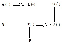 Q. If A © G @ L # O * J $ T ~ P, then how is G related to T?