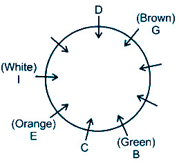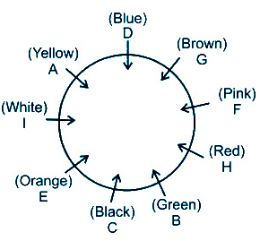 There is a colony in which there is a pool and 9 houses are built around that pool. There are nine people, A, B, C, D, E, F, G, H and I who live in this colony and there are different colours of gates of these nine houses – Red, Blue, Green, Yellow, Orange, White, Black, Pink and Brown.