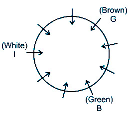 2) G’s house gate’s colour is Brown and is third to the right of B whose house gate is Green colour.