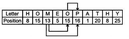 How many pairs of letters (only forward pairs) are there in the word “HOMEOPATHY” that has as many letters in between them in the word as in alphabetical series?