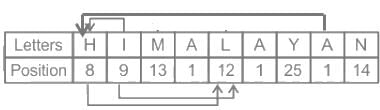 How many such pairs of letters are there in the word ‘HIMALAYAN’, each of which has as many letters between them in the word (both forward and backward direction) as they have between them in the English Alphabet?