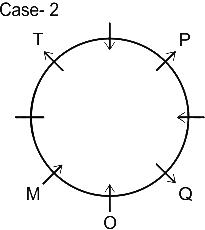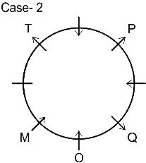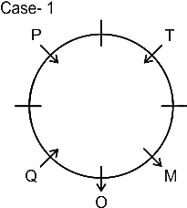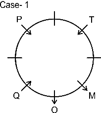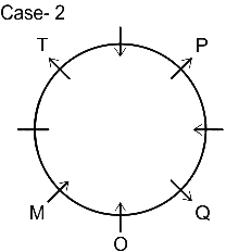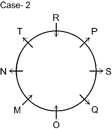 Eight students M, N, O, P, Q, R, S and T are sitting around a circular table such that 3 persons are facing towards the centre and rest are facing away from the centre but not necessarily in the same order.