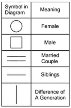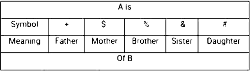 Q. In the following expression: 'K # L + M & N ? P'. What should come in the place of the question mark (?), to establish that ‘N is the daughter of P’?