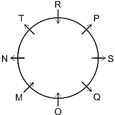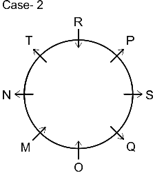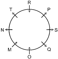 There are two persons gap between O and T and both are facing opposite direction. P sits third to the right of O. Q sits opposite to T and facing the same direction as T. M is neither the neighbour of T nor P. There are three persons gap between M and P and both are facing opposite direction to each other. M is facing opposite direction as Q is facing. There are three persons gap between N and S and both are facing away from the centre. R is sitting second to the right of N and both the neighbours of R facing opposite to the R. R is facing towards the centre.