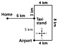 Rahul moved 6 km in the east direction from his home to reach Taxi stand. From there he took a taxi and travelled a distance of 3 km in the north direction. Then he took a right turn and covered a distance of 4 km. Again he took a right turn and travelled a distance of 8 km. After taking another right he travelled 4 km to reach the Airport.