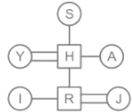 There are 7 members in the family. There are 2 married couples. R is son of H. S is mother of A. H is son of S. Y and H are married couples. A is aunt of I who is the daughter of Y. I is sister-in-law of J.