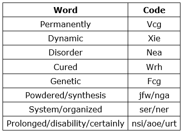 "Genetic disorder permanently cured" is coded as "fcg vcg wrh nea"