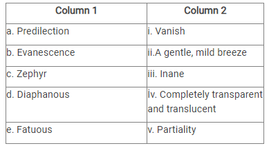 Directions: Match the words in column I with their appropriate meanings in column 2.