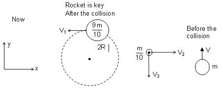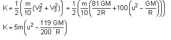 A satellite of mass m is launched vertically upwards with an initial speed u from the surface of the Earth. After it reaches height R (R = radius of the Earth), it ejects a rocket of mass m/10, so that subsequently, the satellite moves in a circular orbit. The kinetic energy of the rocket is