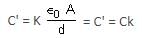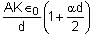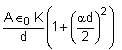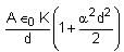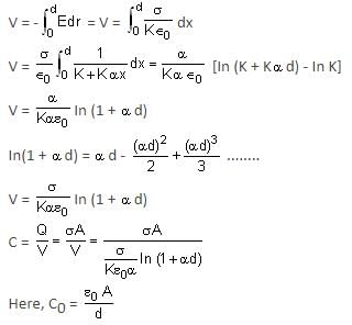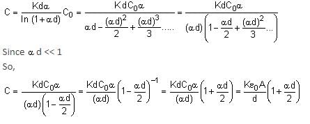 A parallel plate capacitor has plates of area A separated by distance 'd' between them. It is filled with a dielectric which has a dielectric constant that varies as k(x) = K(1 + αx), where 'x' is the distance measured from one of the plates. If (α d) << 1, then the total capacitance of the system is best given by the expression
