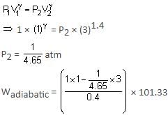 A litre of dry air at STP expands adiabatically to a volume of 3 litres. If γ = 1.40, then the work done by air is