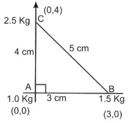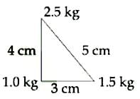 3 point particles of masses 1.0 kg, 1.5 kg and 2.5 kg are placed at 3 corners of a right angle triangle of sides 4.0 cm, 3.0 cm and 5.0 cm as shown in the figure. The centre of mass of the system is at a point