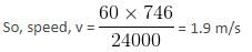 A 60 HP electric motor lifts an elevator having a maximum total load capacity of 2,000 kg. If the frictional force on the elevator is 4,000 N, then the speed of the elevator at full load is close to