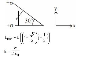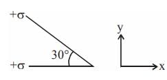 2 infinite planes, each with uniform surface charge density +σ, are kept in such a way that the angle between them is 30°. The electric field in the region shown between them is given by