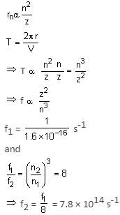 The time period of revolution of electron in its ground state orbit in a hydrogen atom is 1.6 × 10-16 s. The frequency of revolution of the electron in its first excited state (in s-1) is