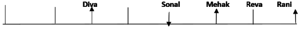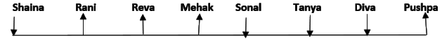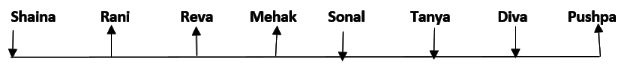Eight friends, Shaina, Rani, Tanya, Reva, Sonal, Mehak, Pushpa and Diva are seated in a straight line but not necessarily in the same order. Some of them are facing south while some are facing north. Only two people sit between Sonal and Rani. Only three people sit to the left of Sonal. Sonal faces south. Mehak sits third to the right of Diva. Diva is not an immediate neighbour of neither Sonal nor Rani. Diva does not sit at any of the extreme ends of the line. Both the immediate neighbours of Reva face north. Reva is not an immediate neighbour of Diva. Only one person sits between Reva and Shaina. Shaina faces the same direction as Diva. The immediate neighbours of Rani face opposite directions (ie if one person is facing north then the other person faces south and vice versa). Persons sitting at the extreme ends face opposite directions. Tanya faces a direction opposite to that of Reva.