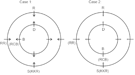 D likes neither RCB nor KXIP and faces R, who neither likes RR nor KKR. The person who likes SRH faces the person who likes DC. A, who likes CSK, faces the immediate neighbor of the person who likes MI. R sits second to the left of S. The person likes KXIP and DC are in a separate circle. The person who likes RR sits on the immediate left of S. Q, who does not like MI, does not face A. The person who likes RR and KKR are immediate neighbors, and one of them faces B, who likes RCB. The person who likes SRH and CSK sit in the same circle but they are not immediate neighbors. R does not like MI.