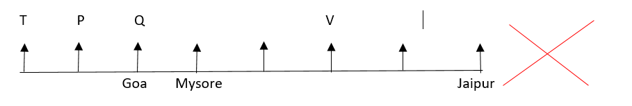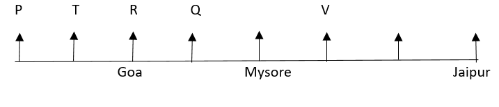(i) V sits third to the right of the person who belongs to Goa. The person who belongs to Jaipur sit second to the right of V. P and T are immediate neighbours of each other. Neither P nor T belongs to Goa or Jaipur. Neither P nor T is an immediate neighbor of V.