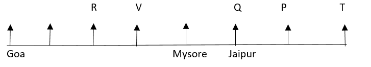 (i)V sits third to the right of the person who belongs to Goa. The person who belongs to Jaipur sit second to the right of V. P and T are immediate neighbours of each other. Neither P nor T belongs to Goa or Jaipur. Neither P nor T is an immediate neighbor of V.